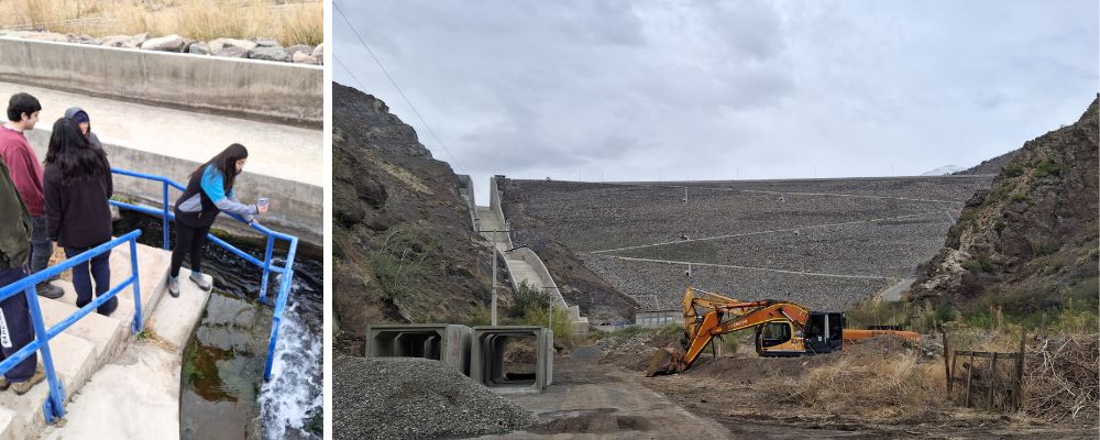 La segunda parte de la visita incluyó un recorrido por canales de riego junto a representantes de la Junta de Vigilancia del Río Putaendo. Allí, el grupo de estudiantes conoció nuevas tecnologías aplicadas a la distribución de aguas, obras de arte hidráulicas, y aspectos sociales del uso y gestión del recurso. “Conversamos sobre el sistema de turnos, cómo se reparten las acciones entre comunidades y el impacto humano detrás de decisiones técnicas complejas”, agregó Jesús.